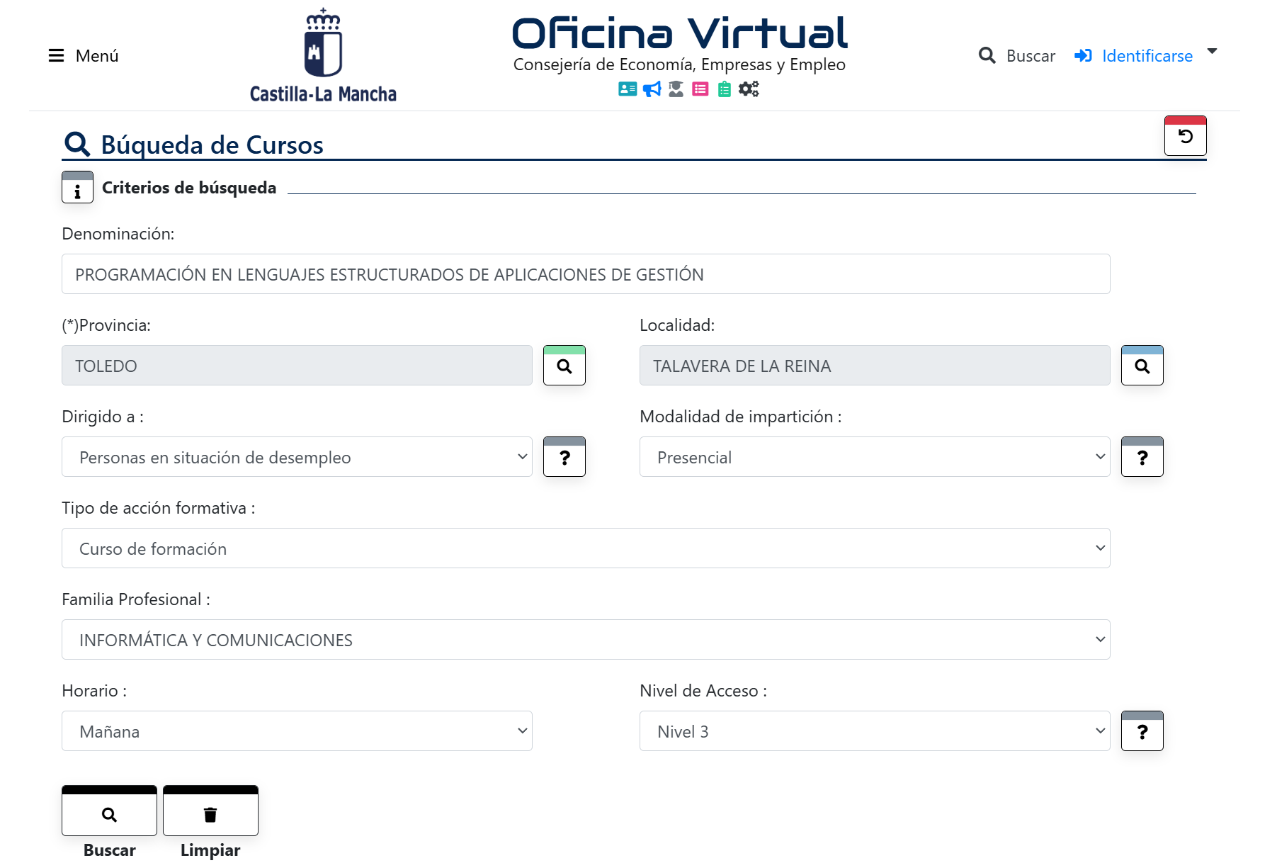 Las inscripciones sólo la podrás realizar a través del portal de la Junta de Castilla la Mancha